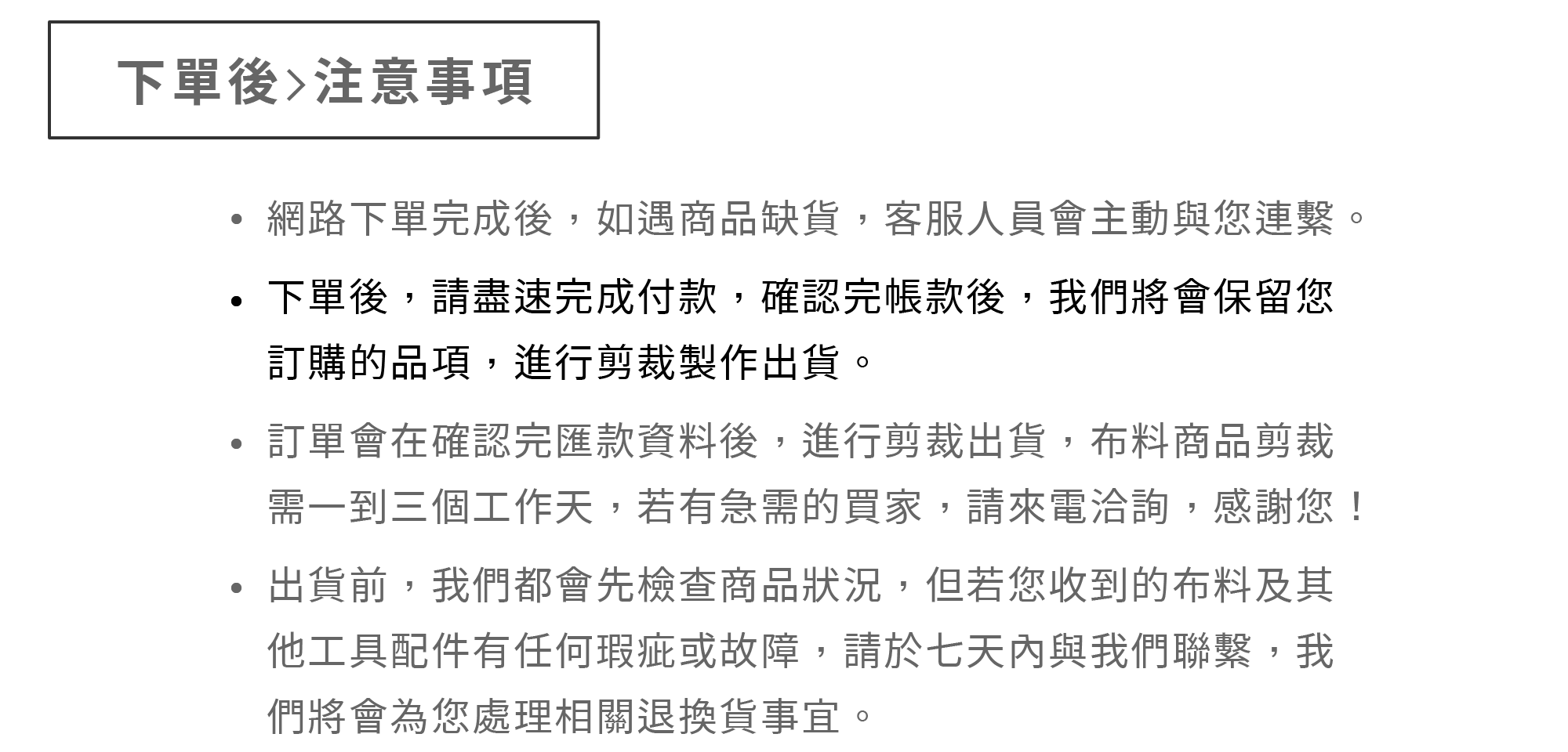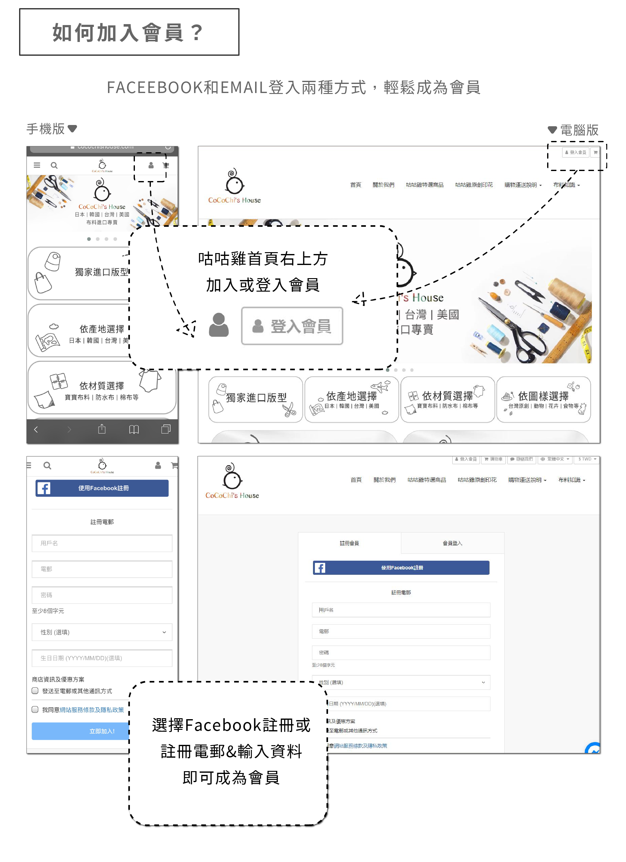 CUSTOMER SERVICES 購物流程 會員說明 網購須知 網站買布說明 運費&查詢 隱私權政策 Privacy