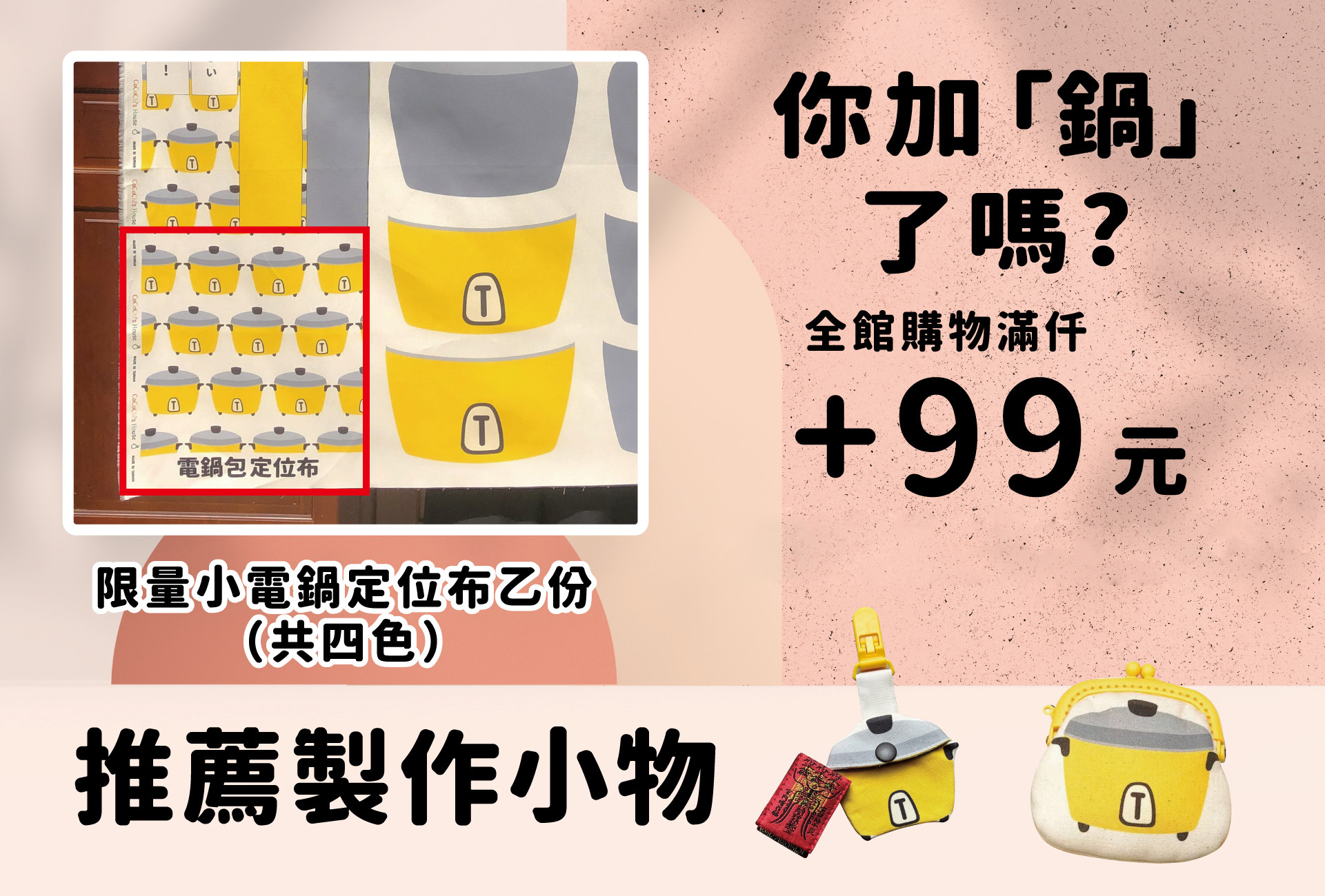 Tip1~滿$1,000元享$99元加購鍋邊料乙份(共四色)