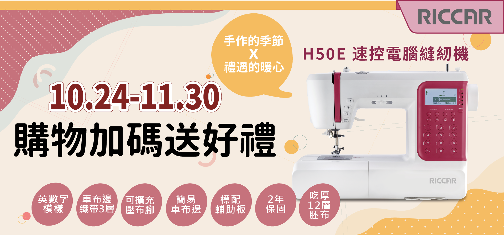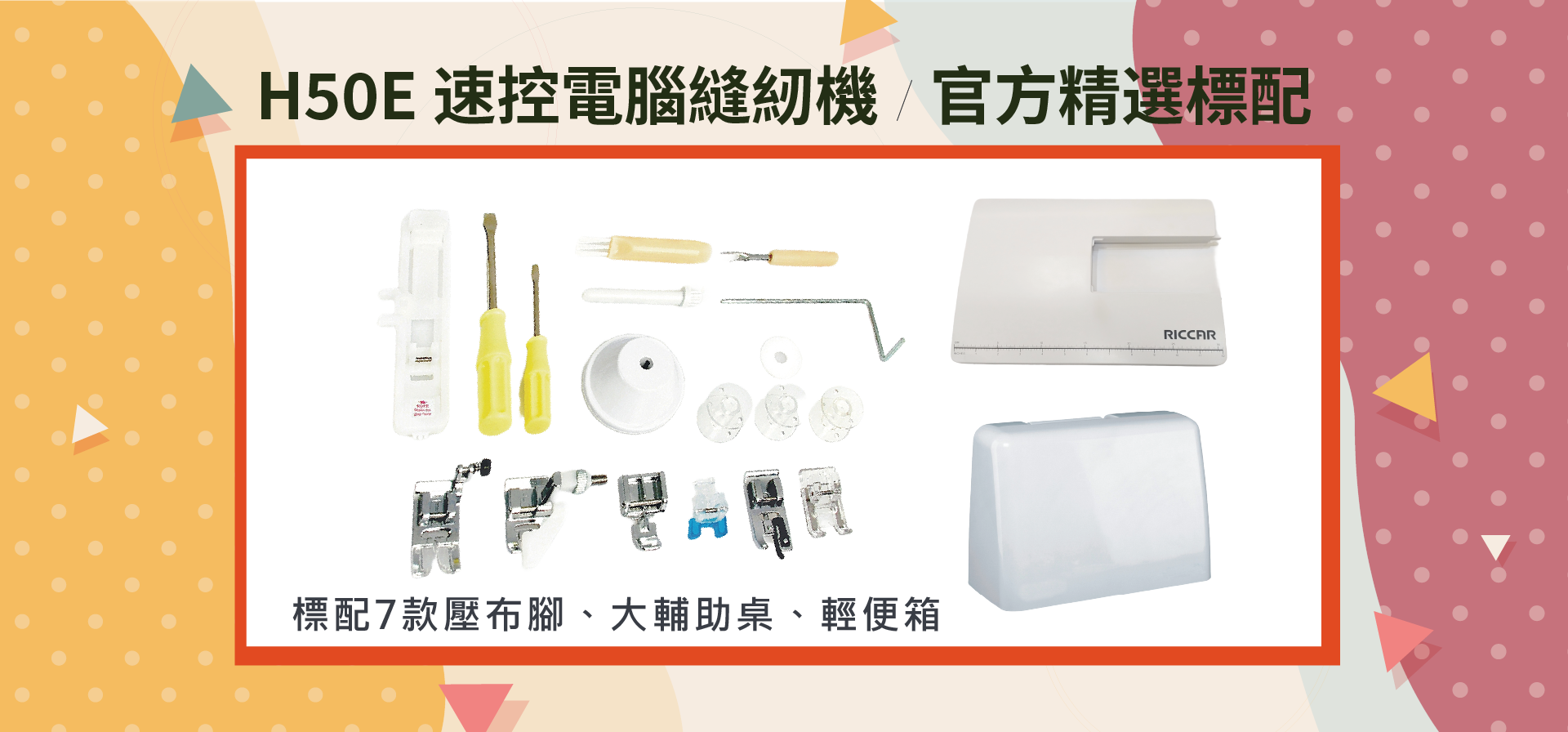 【RICCAR 立家 H50E 電腦式縫紉機】為專業進階縫紉機種,擁有 404 種縫紉模樣與 2 組英文字體,可輕鬆完成縫紉、拼布及洋裁等創作。搭載 LED 照明、自動穿線器、手控與腳控雙操作模式,並附贈輕便收納箱與大輔助板,讓創作空間更寬廣、操作更順暢。