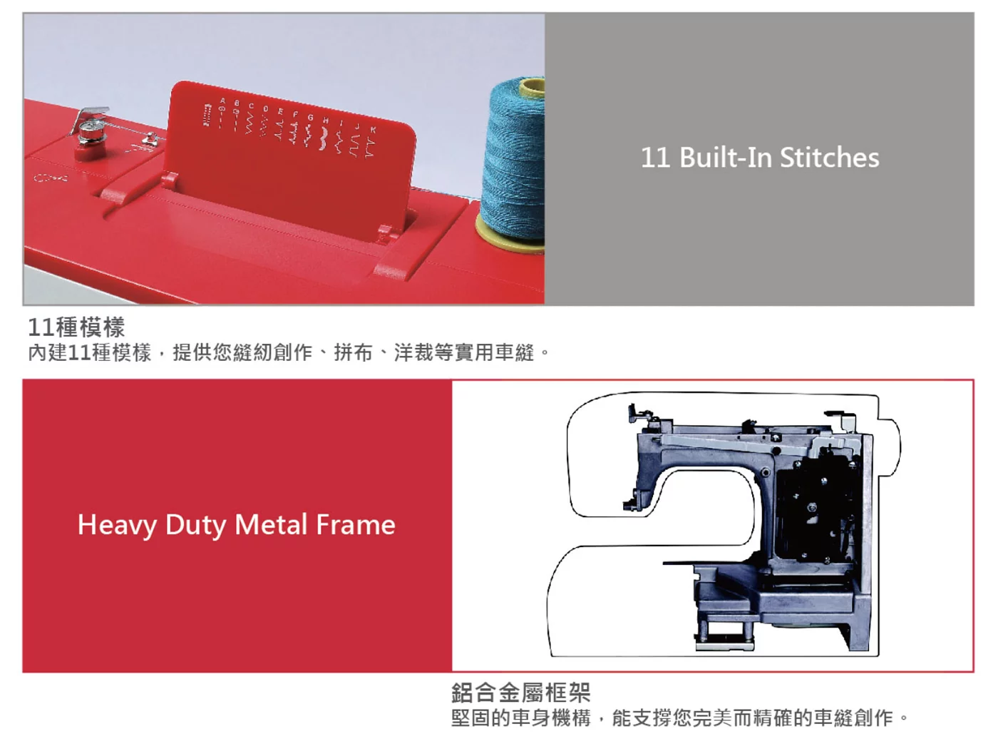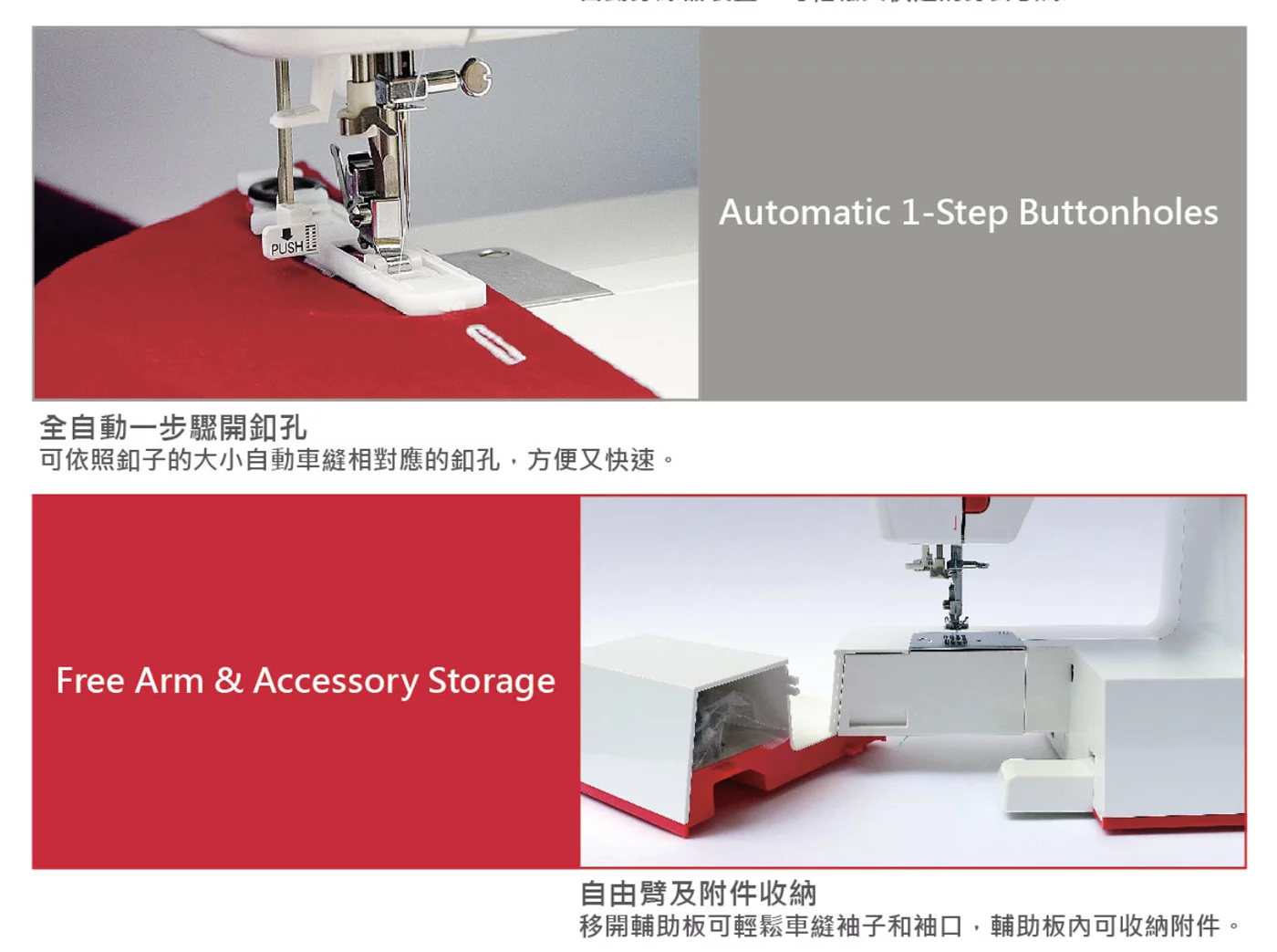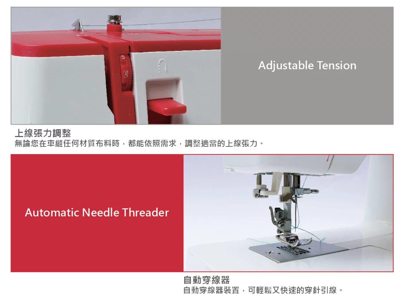 Riccar K10K 縫紉機 入門機種,12種針趾花樣,自動穿線功能,一步驟開釦孔,2年原廠保固。